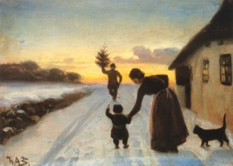 Christmas advances o'er the ground.